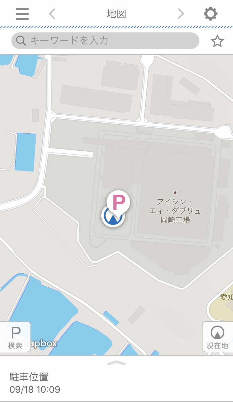 駐車した位置で[現在地を記録]を押すと駐車した位置に