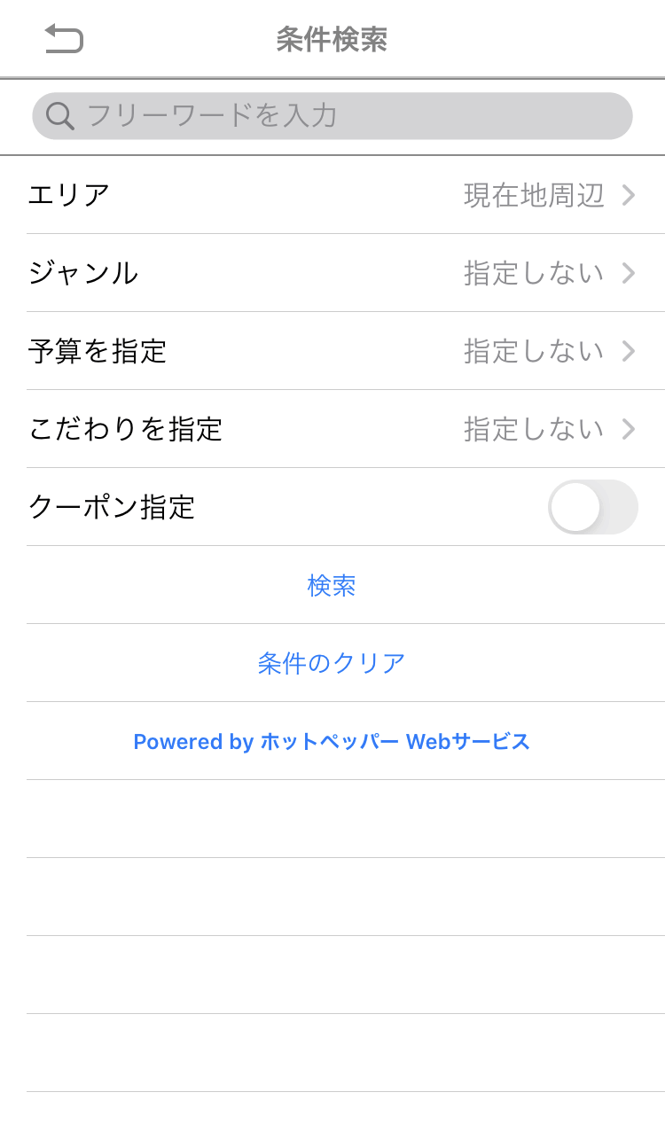 3「ホットペッパー」選択時の設定メニューは下記のとおりです。