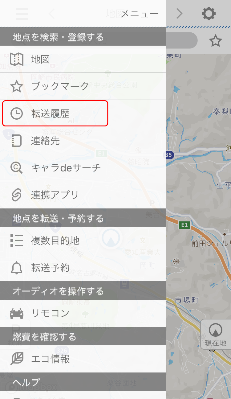 地点の検索からナビへの転送方法、連絡先やクロスリンクなど