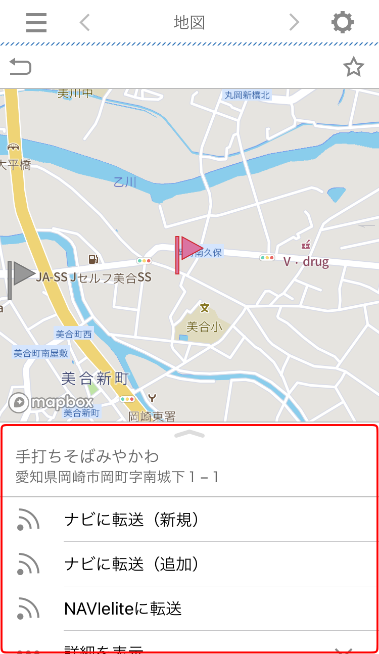 3名称を選択するとリストが表示され、目的地転送や詳細情報の確認などができます。
